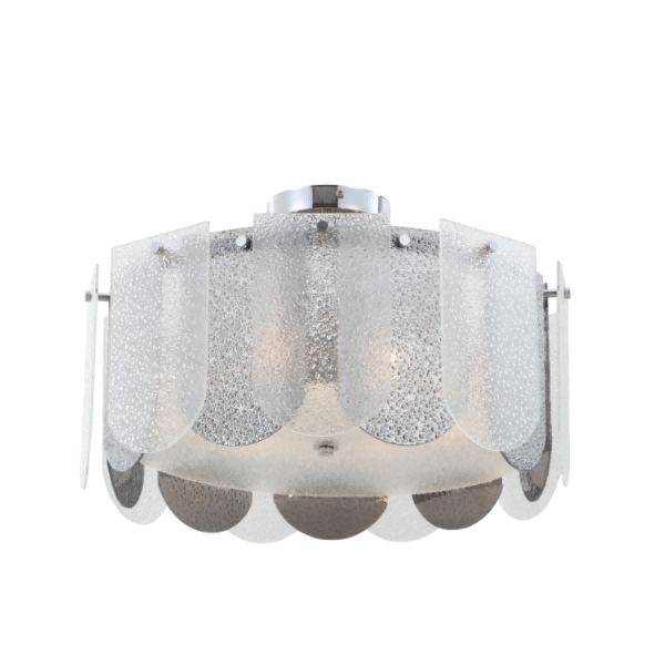Silver at Clear Glass Panels: Ang alternating frosted pilak at malinaw na baso ng 6-light dual glass chrome mirror tapusin ang drum kisame light ay lumilikha ng isang dynamic na ilaw na pagsasabog ng ilaw, pagbabalanse ng ningning at ambiance.