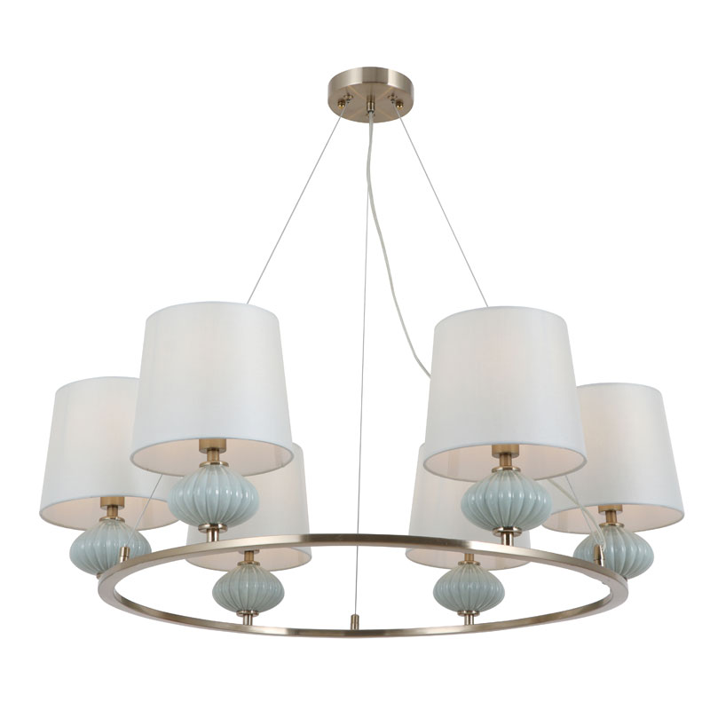 WholesaleCrown Chandelier in Ceramic Para sa Entrance Foyer At Living Room, isang bagong koleksyon mula sa Strong Lighting. Kami ay isang disenyo, produksyon at pag-export ng 3 sa 1 na tagagawa na nakabase sa Zhongshan, China. Ang mapusyaw na asul na recessed stripe ceramics ay may mga eleganteng puting shade. Inilapat namin ang pinakabagong titanium brass finishing sa lamp na ito. Ito ay isang mainit at maaliwalas na disenyo ng chandelier sa katamtamang presyo, na sinuspinde ng 3 pinong bakal na wire.